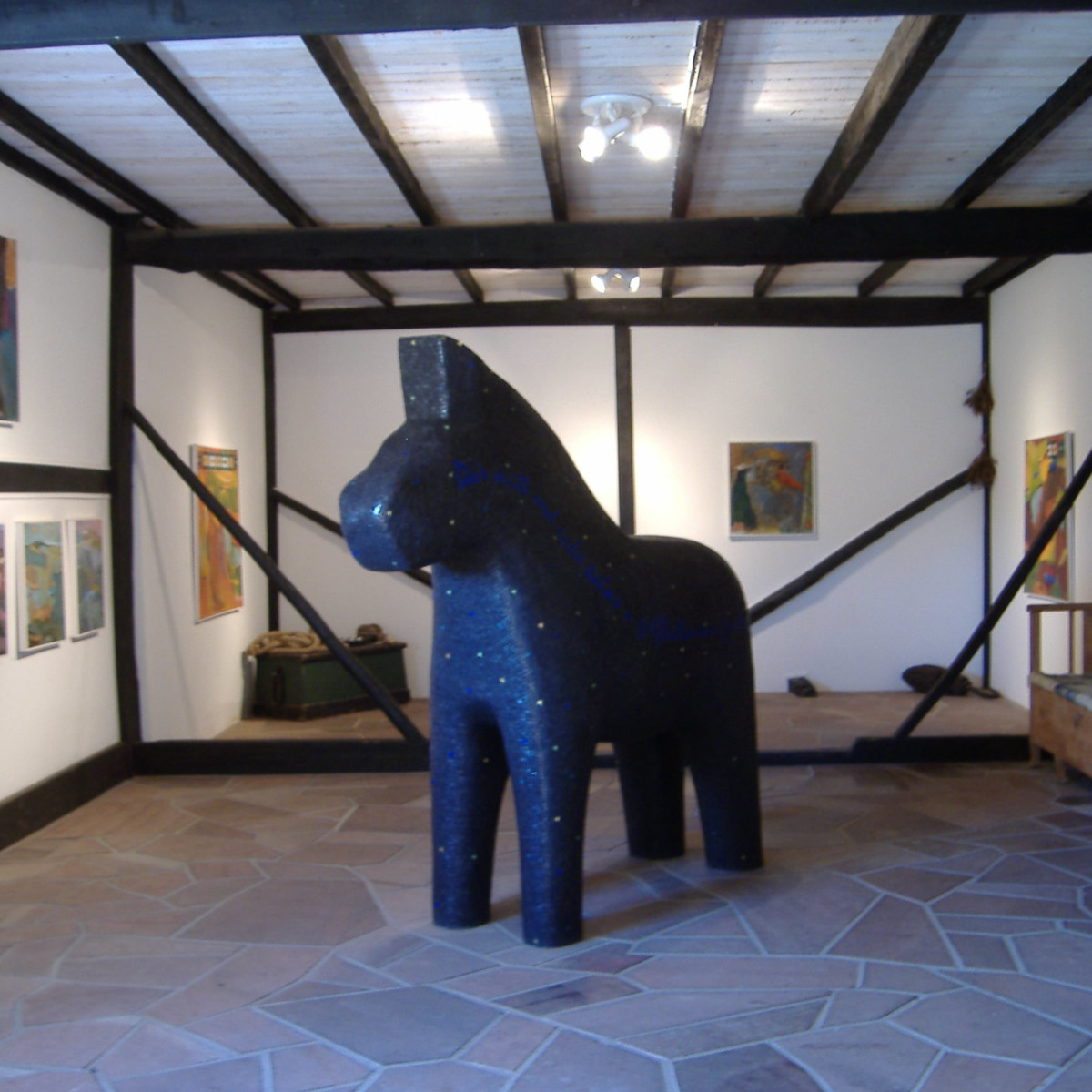 Jürgen Ewel visar nya oljemålningar på Ålkistan.
